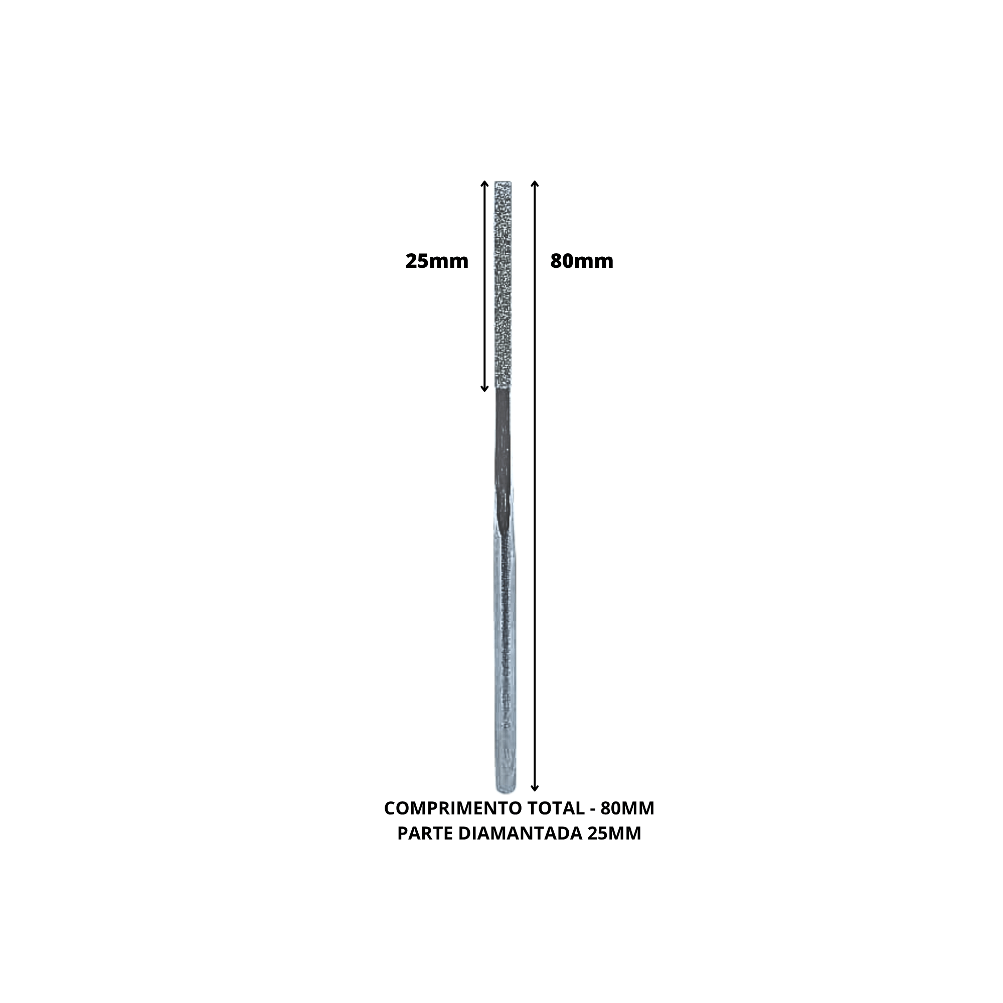 Lima Diamantada Cônica para Lapidadora, possui haste com ø3mm curta, possibilitando assim o uso em máquinas elétricas ou pneumáticas.